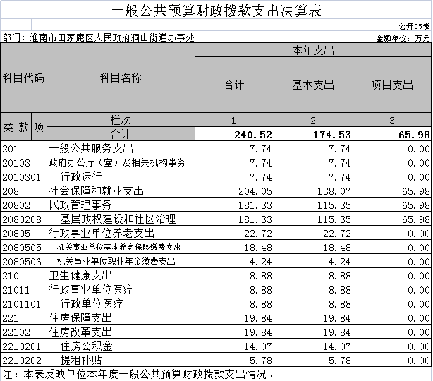 淮南市田家庵区人民政府洞山街道办事处2022年度部门决算