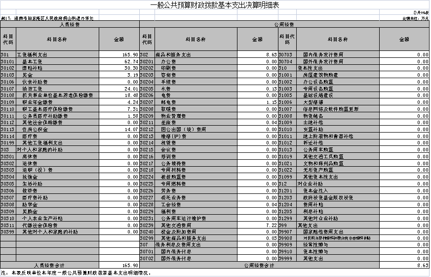 2022年度财政拨款基本支出174.53万元,其中:人员经费165.9万元,主要包括:基本工资等。公用经费8.63万元,主要包括:办公费、印刷费、水费、电费、邮电费、差旅费、租赁费、公务接待费、劳务费、委托业务费、工会经费、其他交通费用、其他商品和服务支出等。