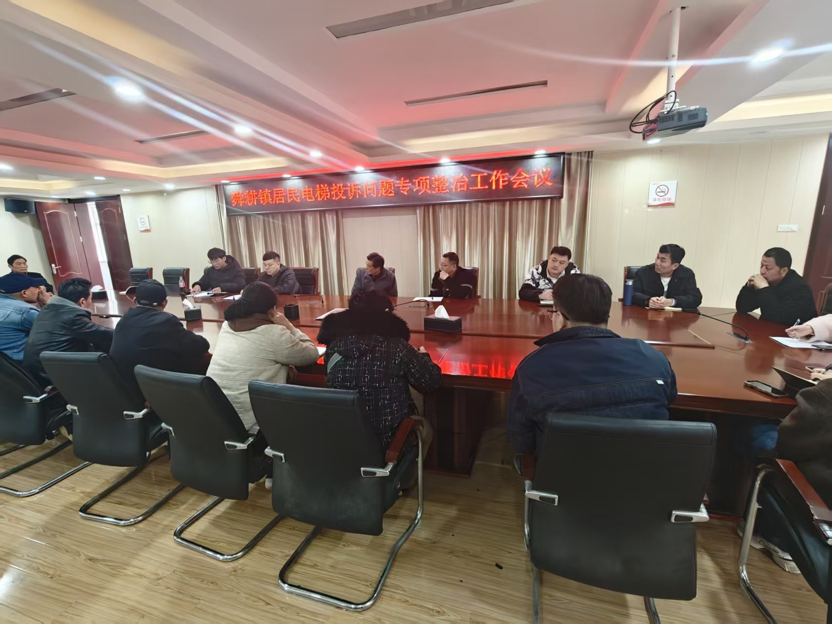 3月20日下午,镇分管领导孙策在二楼会议室召开舜耕镇居民电梯投诉专项整治工作会议。城建办对电梯投诉问题以及数量进行梳理,通报电梯投诉具体类型及投诉数量。针对电梯投诉及安全问题,分管领导孙策提出以下要求:一是正视问题,提高思想认识,背后是安全问题。二是张贴投诉电话,专人处理,开展培训。三是宣传到位,业主群通知,重视诉求。
