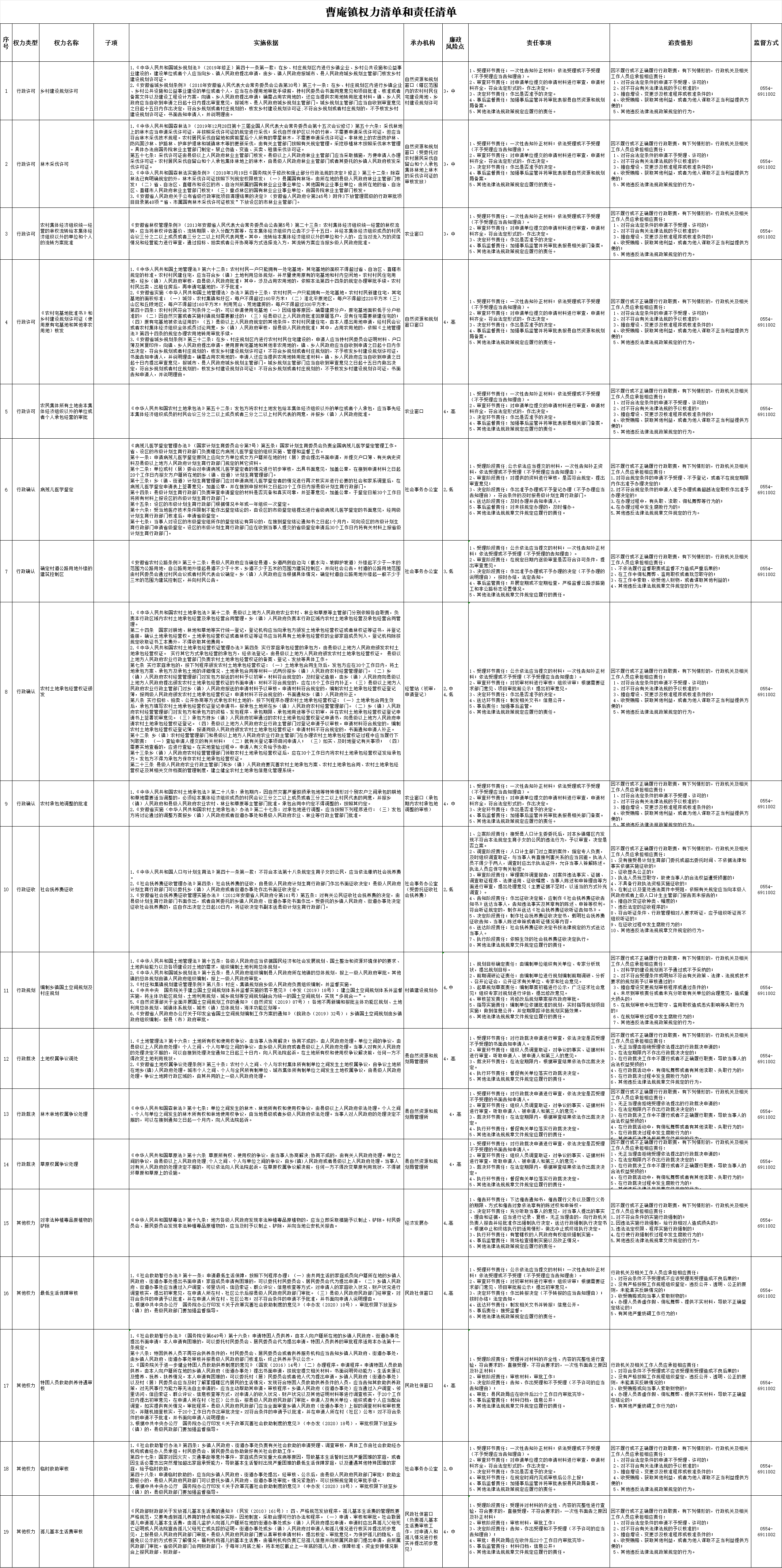 曹庵镇权力清单和责任清单