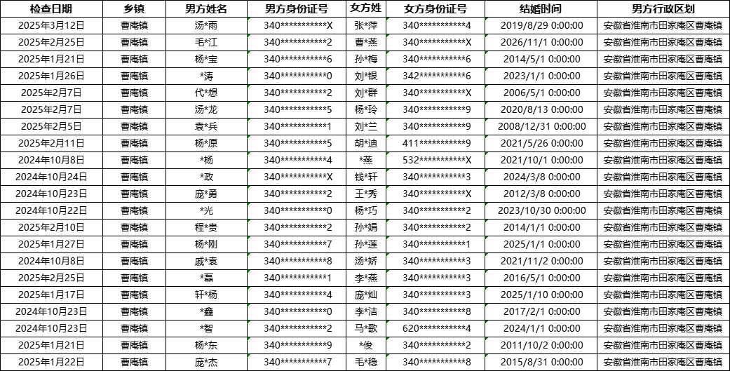 曹庵镇2025年第二季度孕前优生健康检查名单