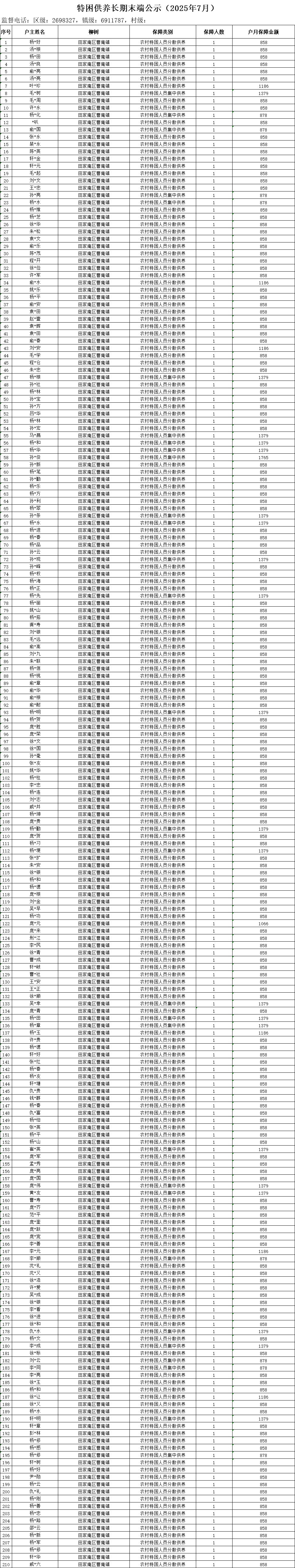 曹庵镇2025年8月五保人员名单公示