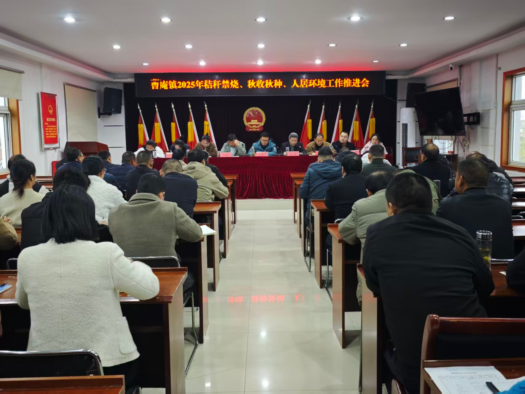 会议主题:曹庵镇2025年秸秆禁烧、秋收秋种、人居环境工作推进会