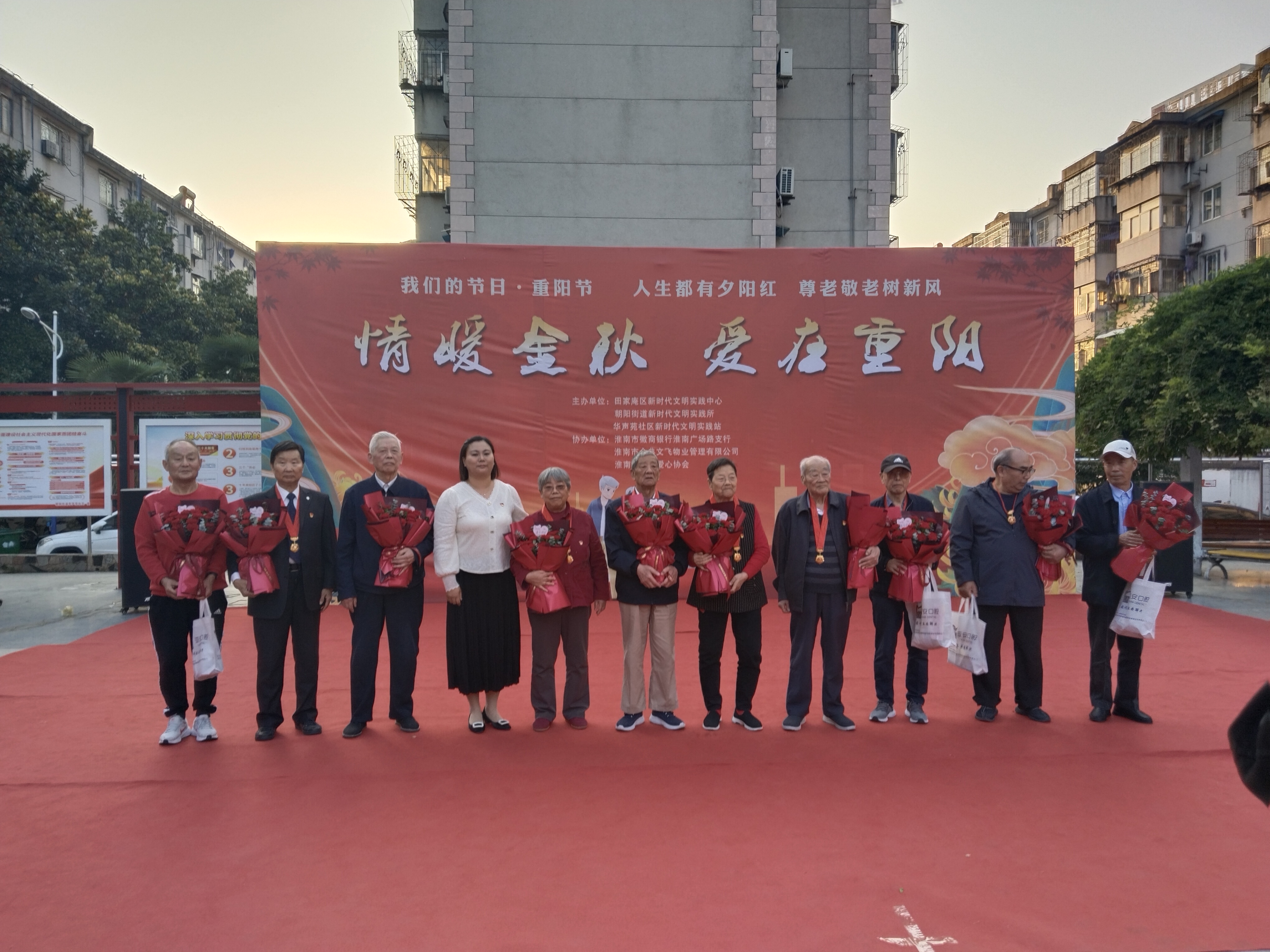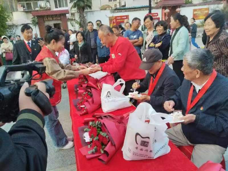 正值重阳节来临之际,为弘扬“尊老、爱老、助老”的中华民族传统美德,为丰富广大离退休老同志和社区所有老人的文化娱乐生活,为“老有所养、老有所乐、老有所为”更好落到实处。2023年10月21日,田家庵区新时代文明实践中心、朝阳街道新时代文明实践所、华声苑社区新时代文明实践站联合徽商银行、金典文飞物业、淮南市圆梦爱心协会在华声苑广场,共同开展“情暖金秋 爱在重阳”我们的节日·重阳主题文艺汇演活动。华声苑社区党委书记任元红上台做开幕致辞。活动中有丰富多彩的节目和党建知识有奖问答环节,同时还为在党五十周年老党员献上鲜花与祝福。在文艺汇演结束后,任书记亲手切分节日蛋糕,志愿者们将蛋糕送给在场的老党员和居民群众。在一片欢乐祥和的氛围中,活动圆满结束,并受到社区居民广泛好评。