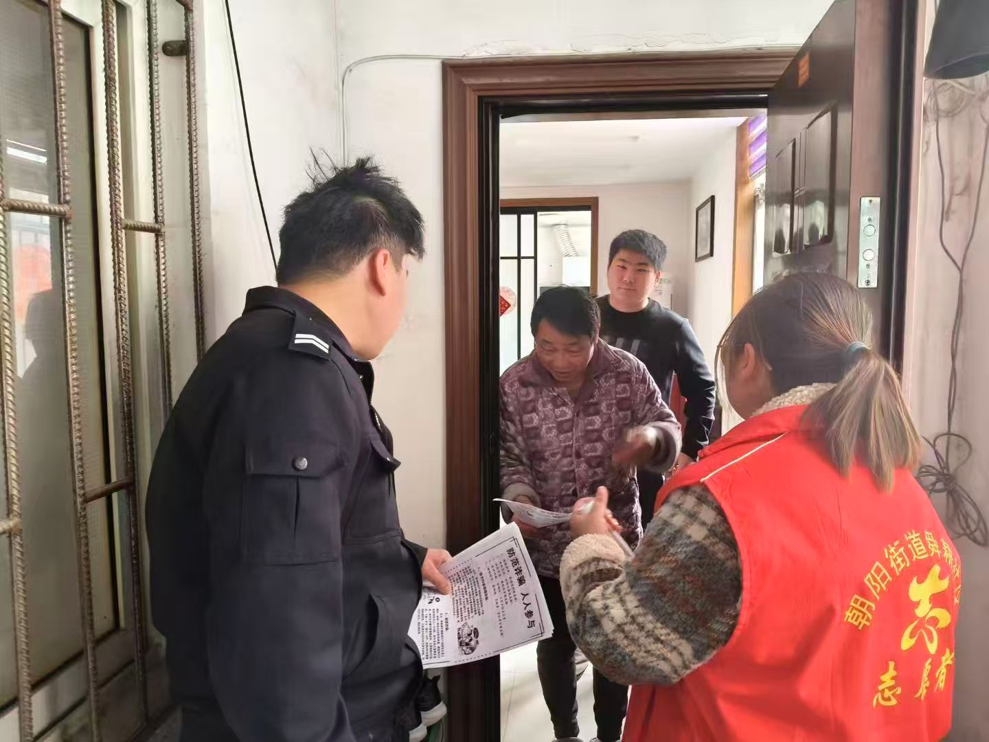 11月24日,朝阳街道舜耕社区联合片区民警针对辖区商铺和居民家中进行反电诈宣传。通过入户走访,身边案例宣讲等方式,普及近期电信诈骗新型案例,提醒居民守护好自己的“钱袋子”。