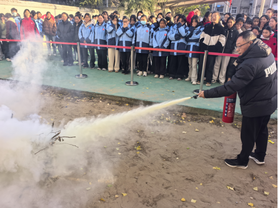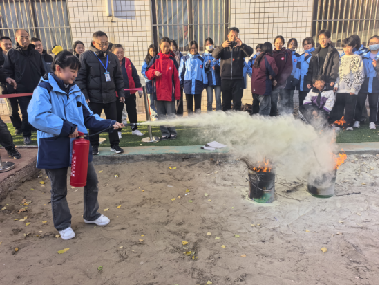 为进一步营造安全稳定的教育教学环境,提高全体师生的消防安全意识和应对突发火灾的能力,落实“人人都会使用灭火器”的相关要求,11月27日下午,我校开展了师生灭火器使用培训暨消防灭火演练活动。