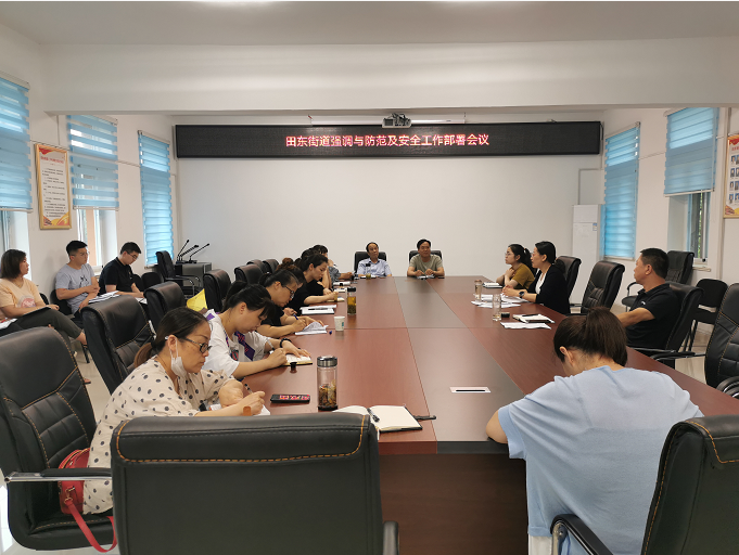 6月16日下午,田东街道召开田东街道强调与防范及安全工作部署会议,针对近期暴雨天气,部署和安排预警和防范可能发生灾害的具体安全工作。街道领导班子成员、街道各部门负责人、社区书记主任参加。