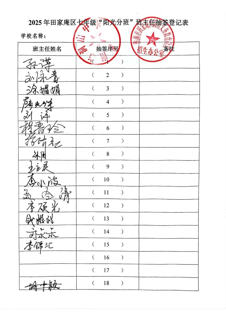 现将我校阳光分班结果公布如下: