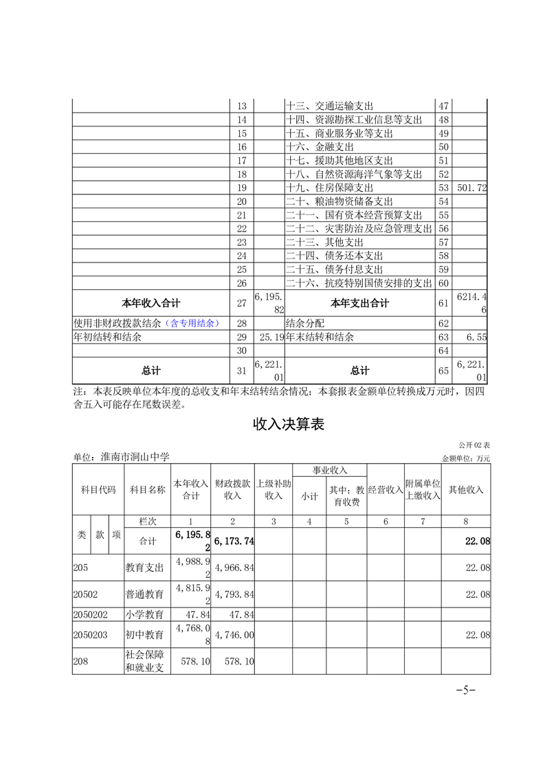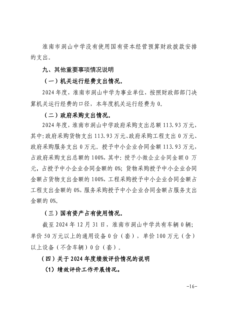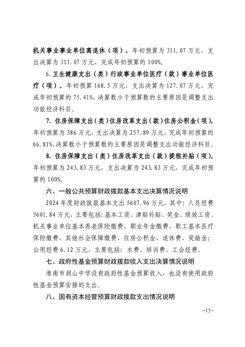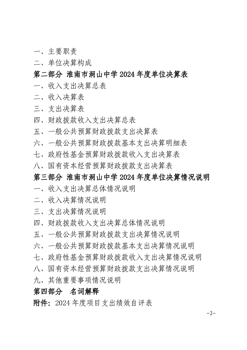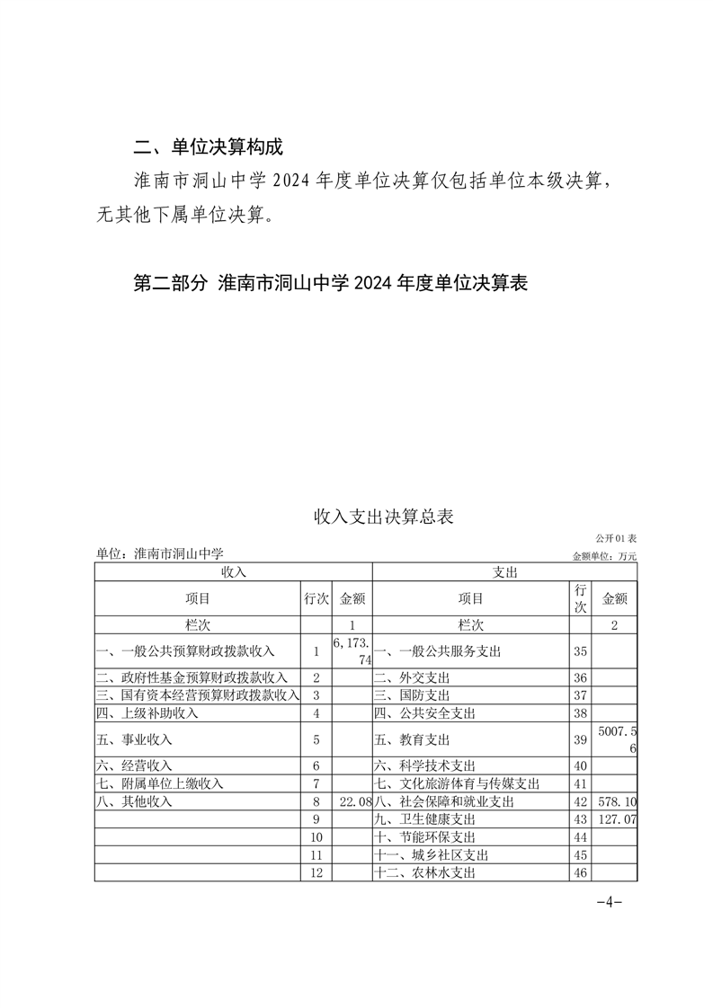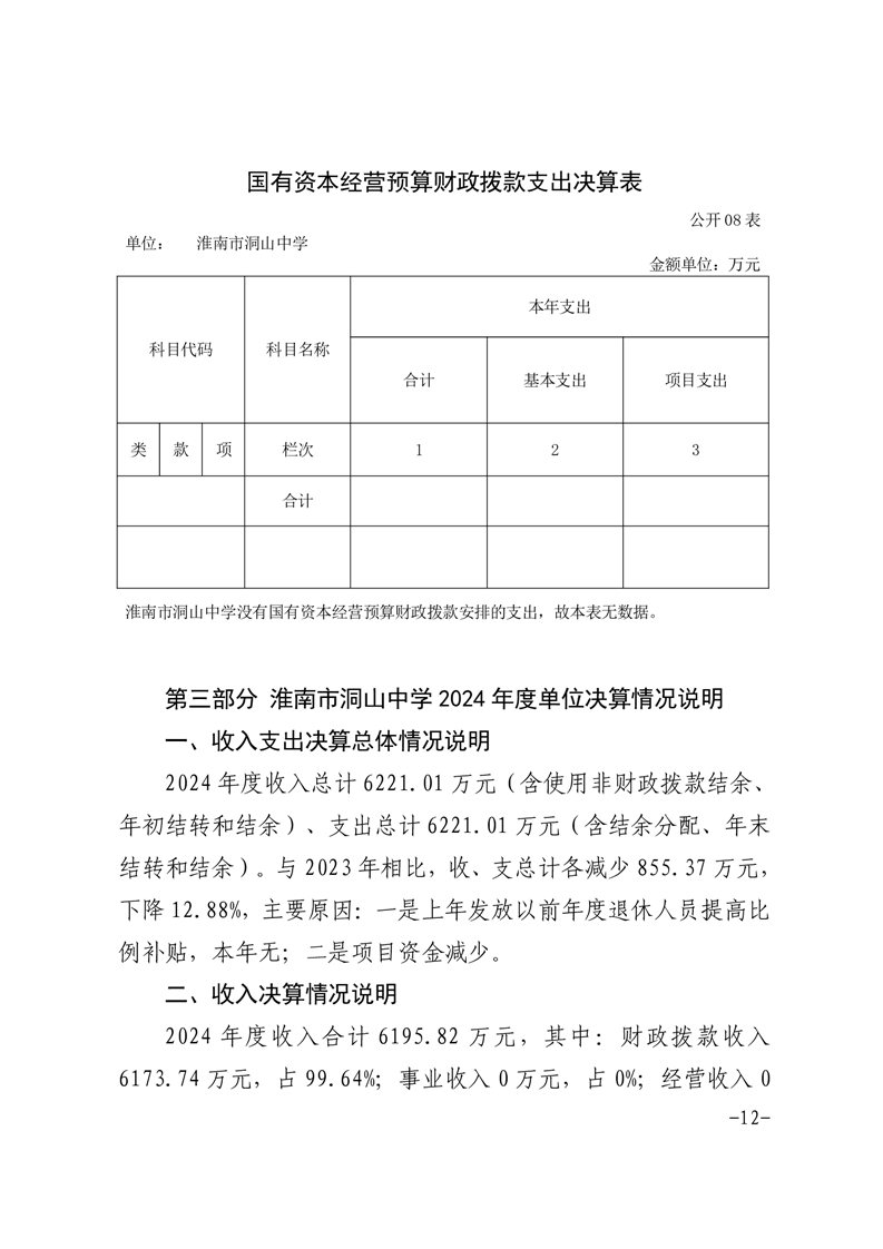 淮南市洞山中学2024年度单位决算