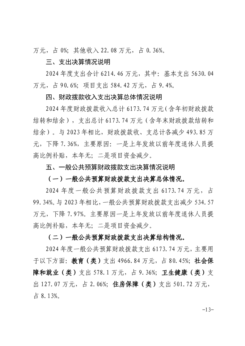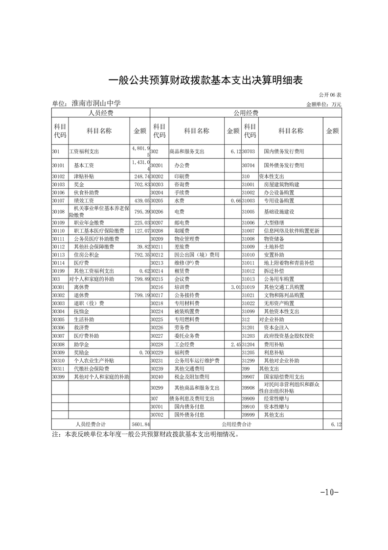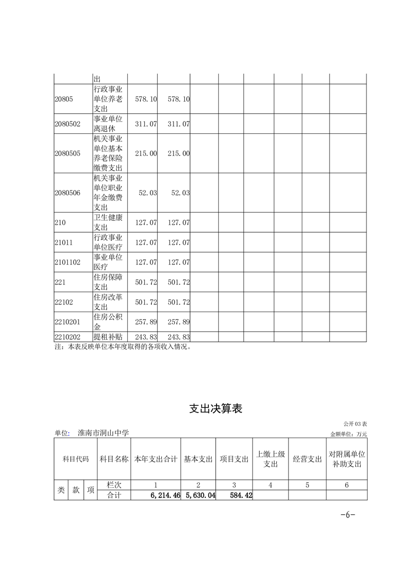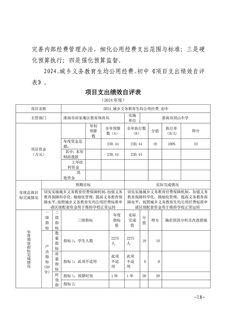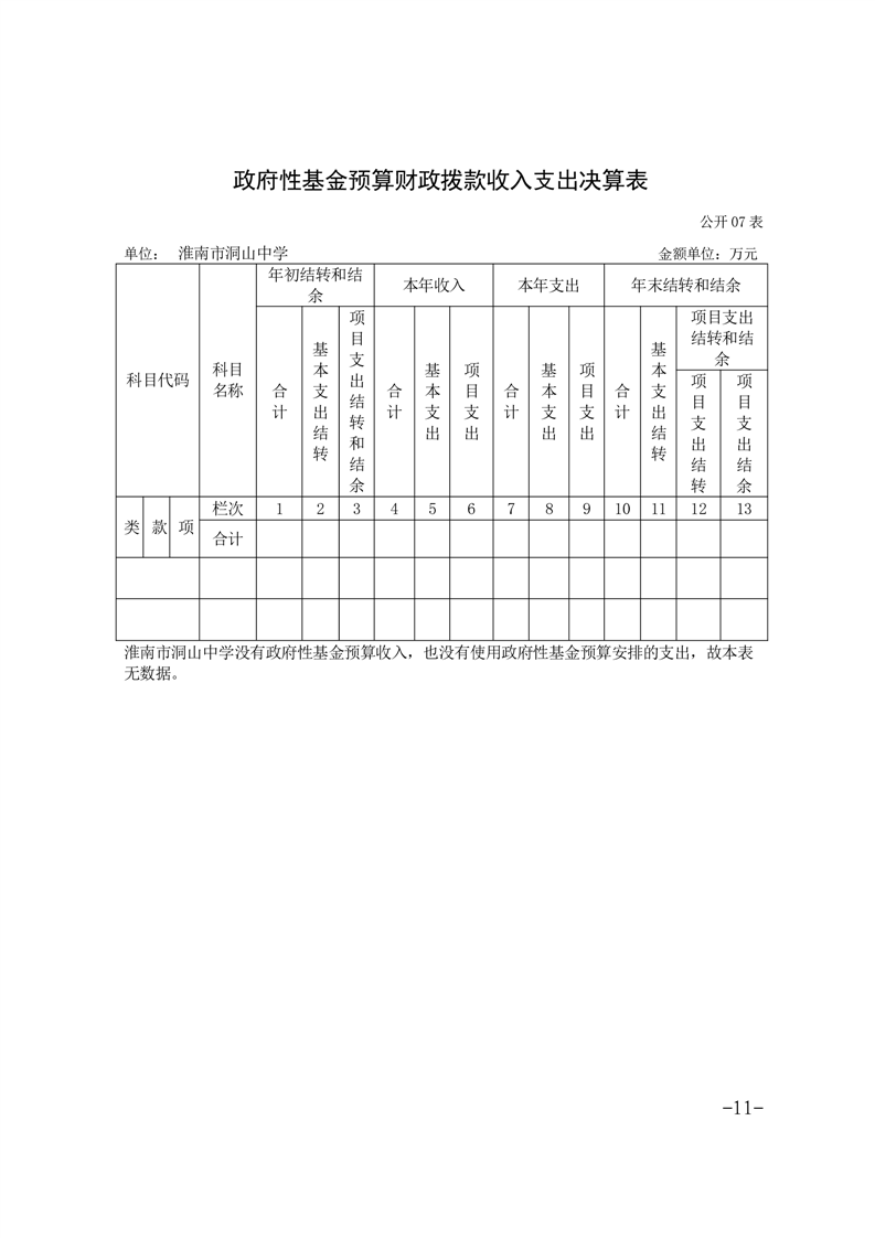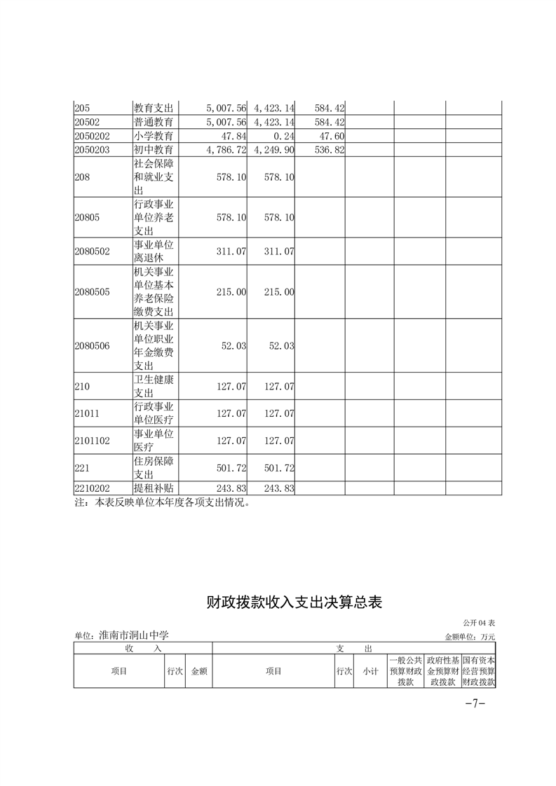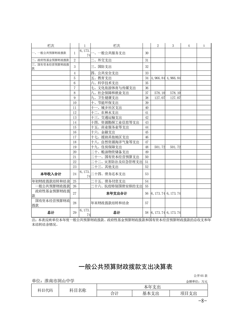 淮南市洞山中学2024年度单位决算