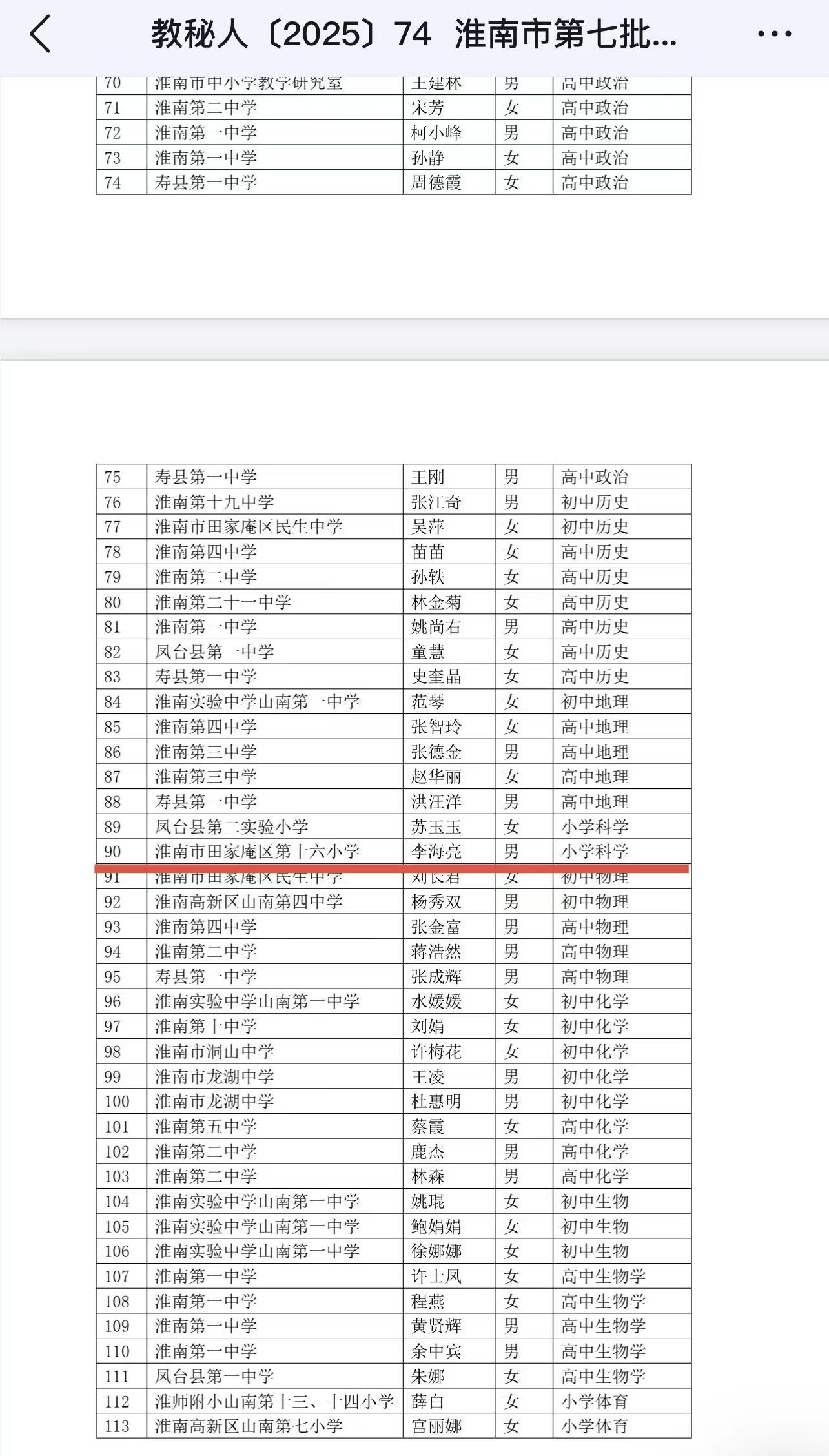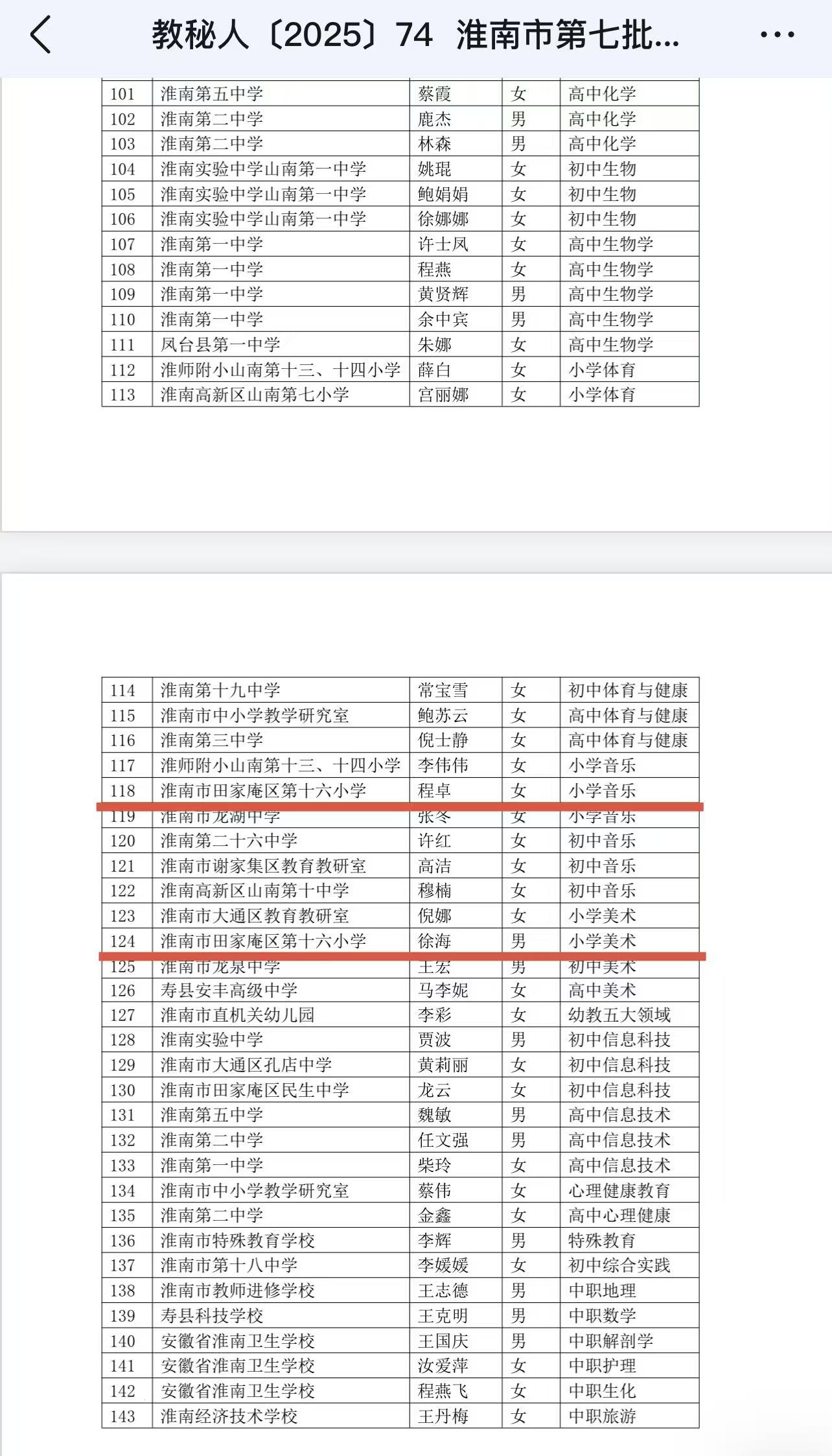 • 淮南市第七批学科带头人:徐海、程卓、李海亮、鲍静