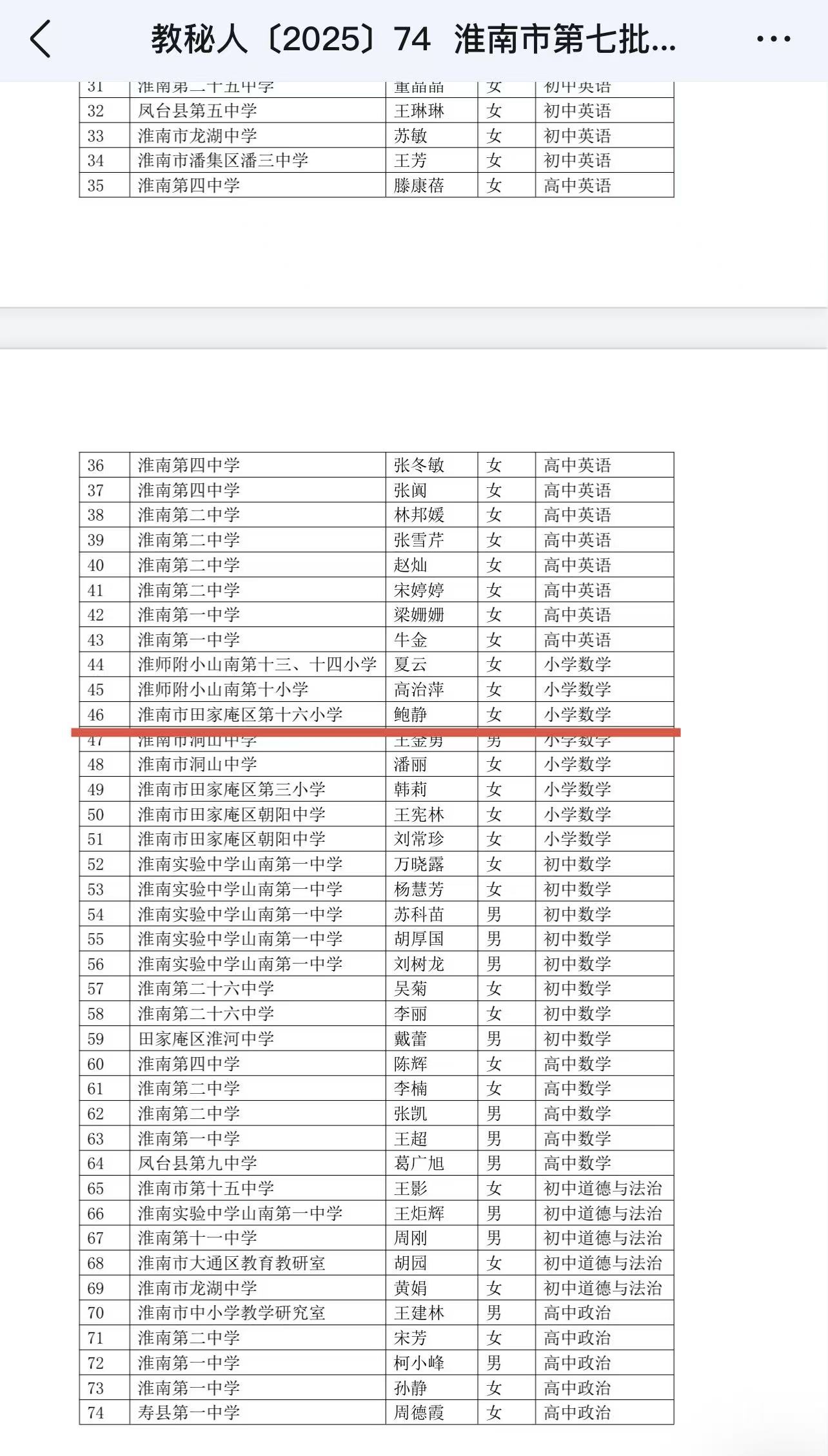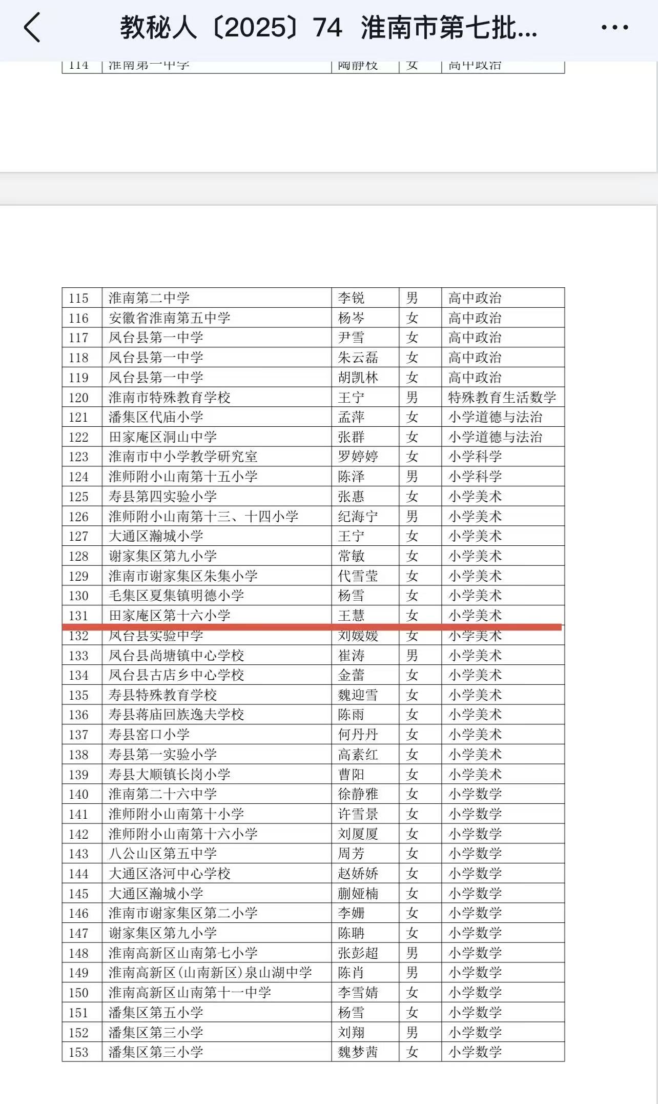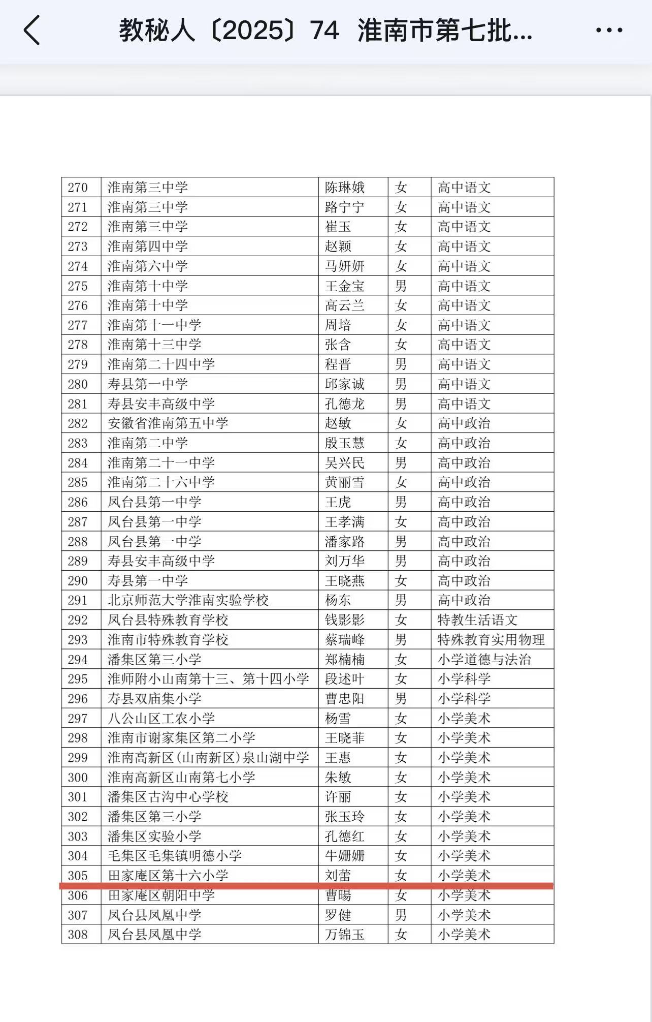 淮南市第七批骨干教师:刘蕾、张杨洋、代倩囡