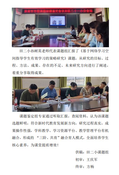 田二小市级课题《基于网络学习空间指导学生有效学习的策略研究》顺利结题