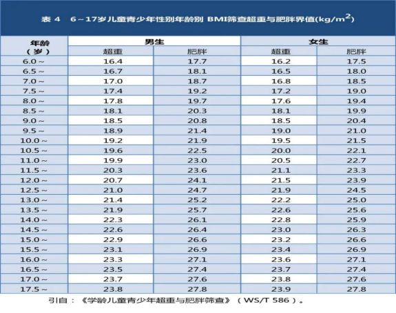 1.根据BMI=体重(kg)/身高2(m2)公式,对照《BMI筛查超重/肥胖筛查标准》(表1),判断是否属于超重/肥胖。