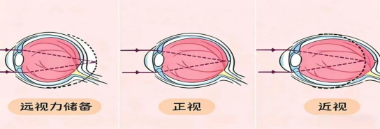 近视防控的关键在于“关口前移”,远视储备是新生儿与生俱来的“一笔视力存款”。因眼球未发育成熟、眼轴较短,外界光线聚焦于视网膜后方,新生儿的双眼处于生理性远视状态,此时屈光度数通常为远视250~300度,称之为远视储备量。
