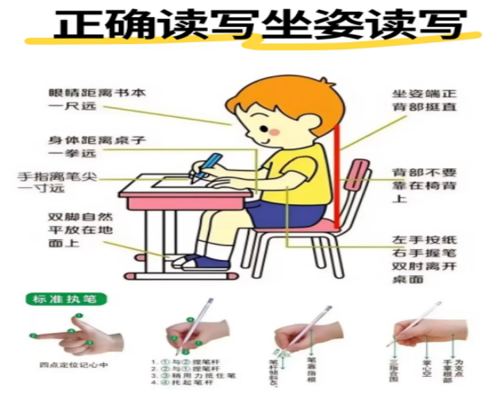 一拳:胸前与书桌保持一拳距离,腰背挺直不驼背。