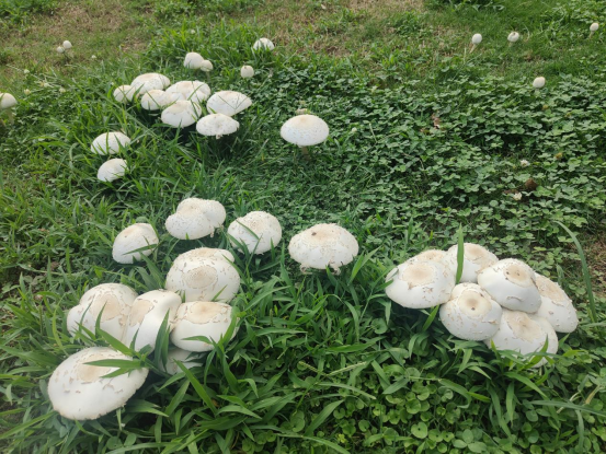 连日来田家庵区阴雨持续,一场场雨后道路边、小区里、田地里、公园里突然出现大量野生蘑菇