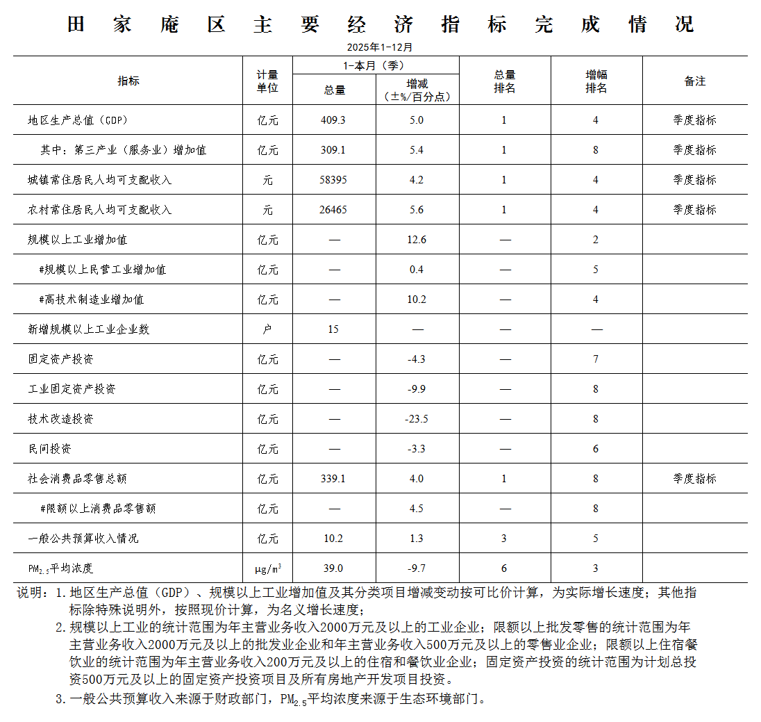 田家庵区月度经济数据(2025.12)