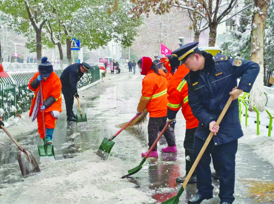 为保障辖区道路畅通,田家庵区公安、城管、环卫等部门第一时间开展扫雪除冰行动,全力保障群众及车辆出行安全,最大限度减少雨雪、冰冻天气对居民出行和生活的影响。 (记者 李东华 通讯员 付娜 何川 摄)