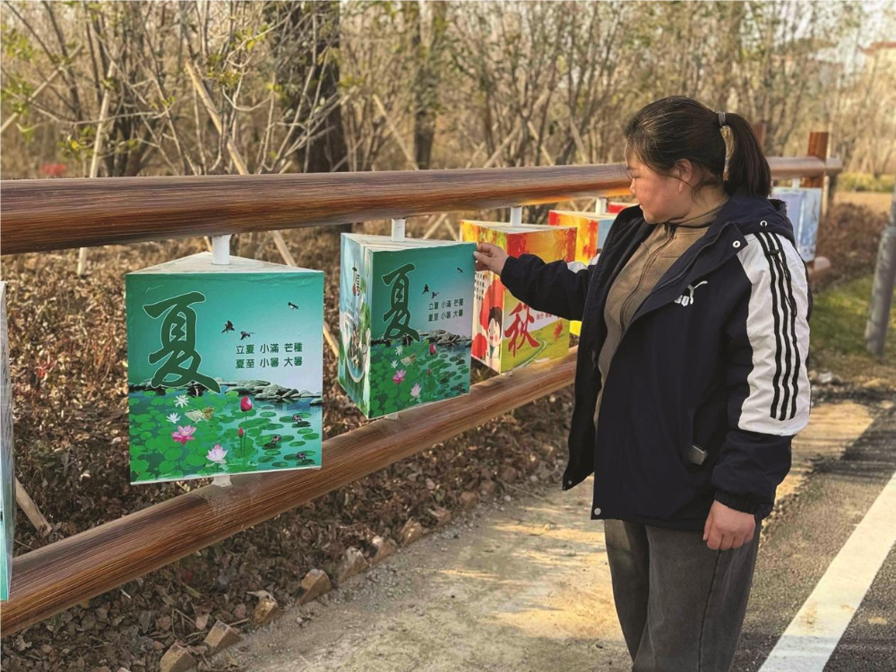 “大寒过了就是立春……”近日,田家庵石头埠村的一位村民在《淮南子》节气科普慢行廊边看边说。立春、雨水、惊蛰……二十四幅田园小画展示在村口的栏杆上,形成一条露天的文化长廊,于步道旁搭建起一个微型的“节气课堂”,让村民在漫步健身之余,能直观感受时节流转的韵律与中国传统文化的魅力。(记者 李严 摄)