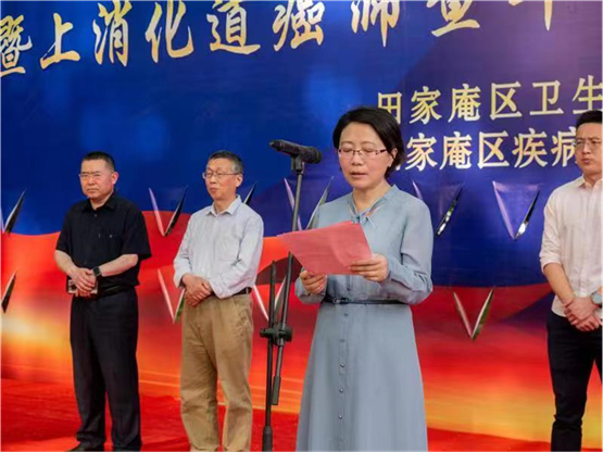 副区长吴玲娣在活动仪式上对2023年我区上消化道肿瘤筛查工作进行了部署,她强调,上消化道癌筛查是我区民生项目,各相关单位要提高政治站位,进一步认识癌症筛查的重要意义,树立健康理念,培养健康行为;要广泛宣传动员,凝聚防治合力;要健全预防体系,提高救治水平;要制定实施方案,精准为民解忧。发现一例早癌,挽救一个生命,幸福一个家庭!希望通过这一项目,更好地为全区人民的健康服务,让群众切身享受到该项目的实惠和温暖。