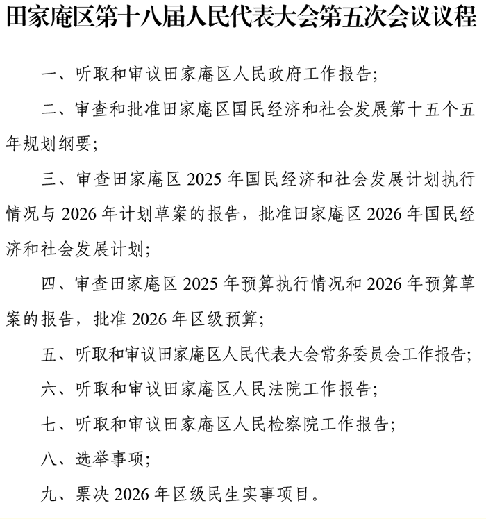 田家庵区第十八届人民代表大会第五次会议议程