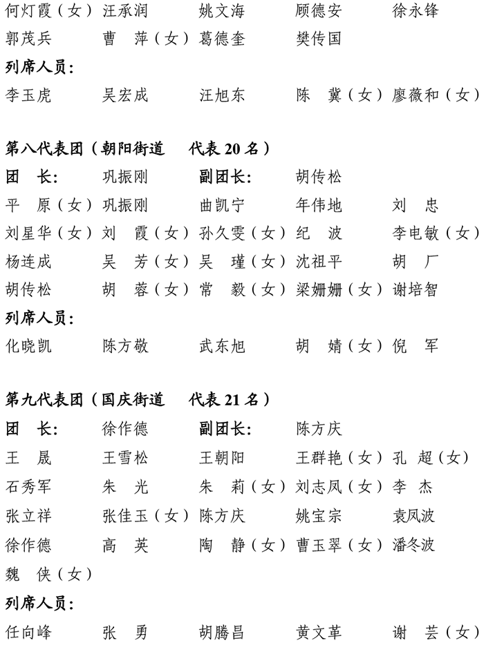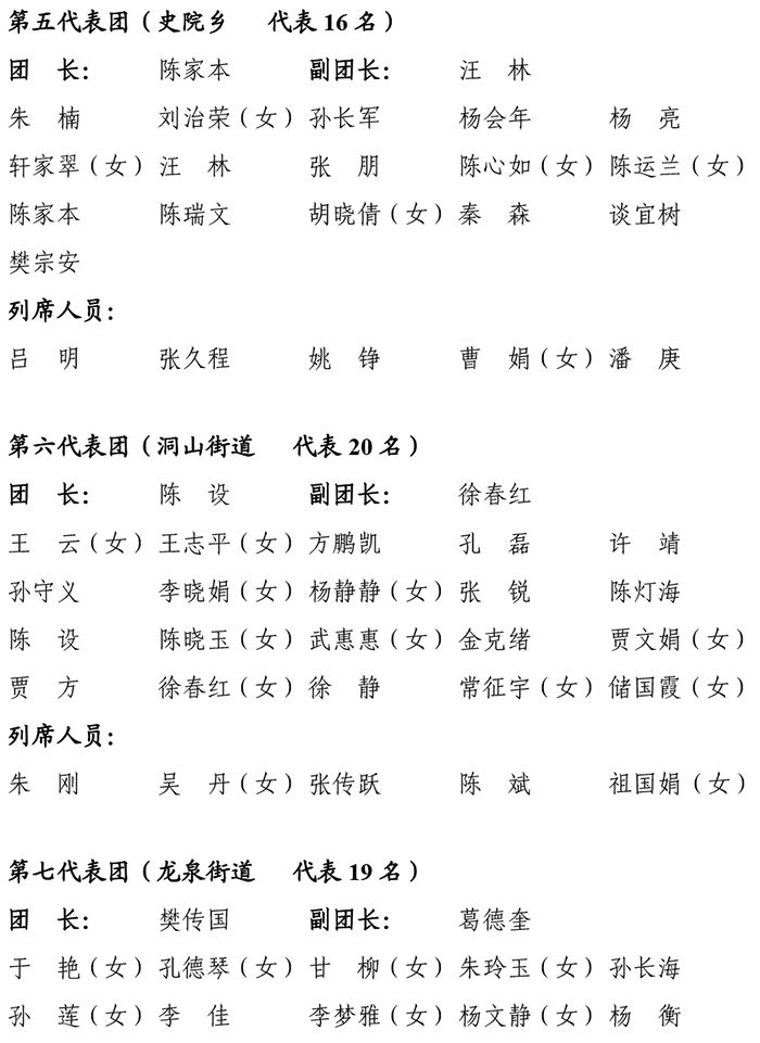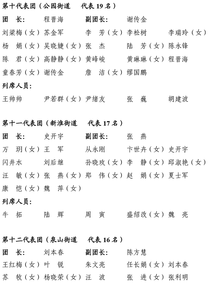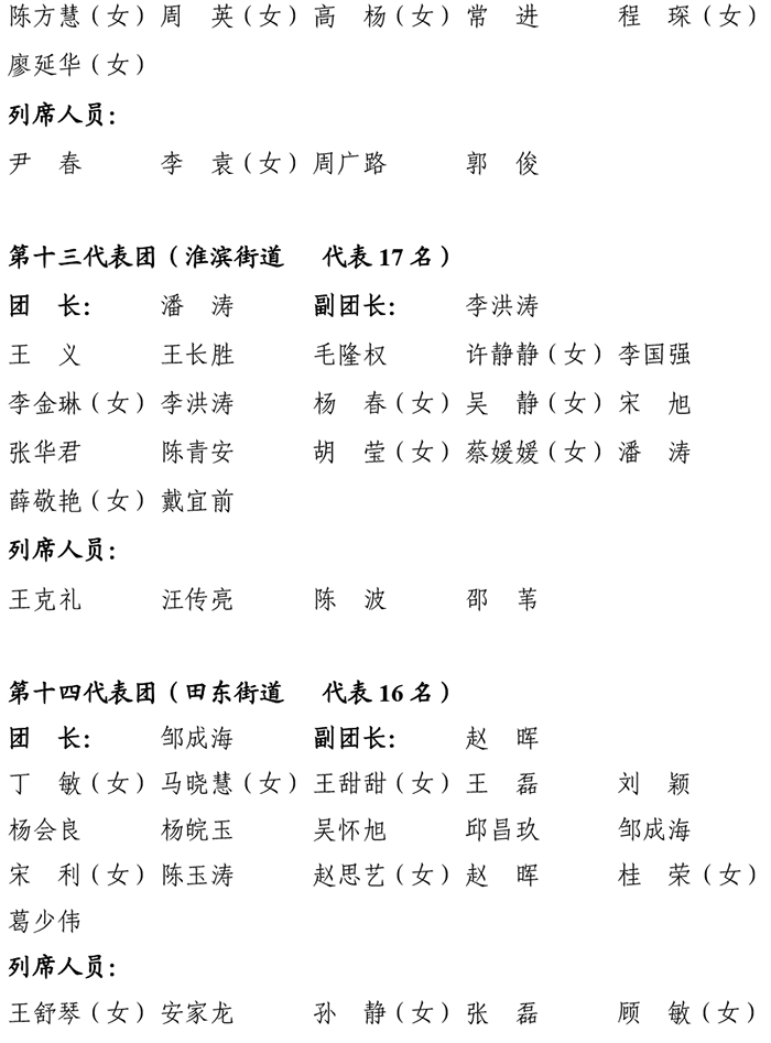 田家庵区第十八届人民代表大会第五次会议代表及列席人员分团名单