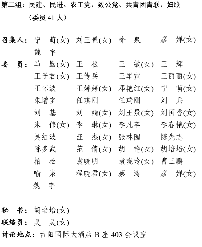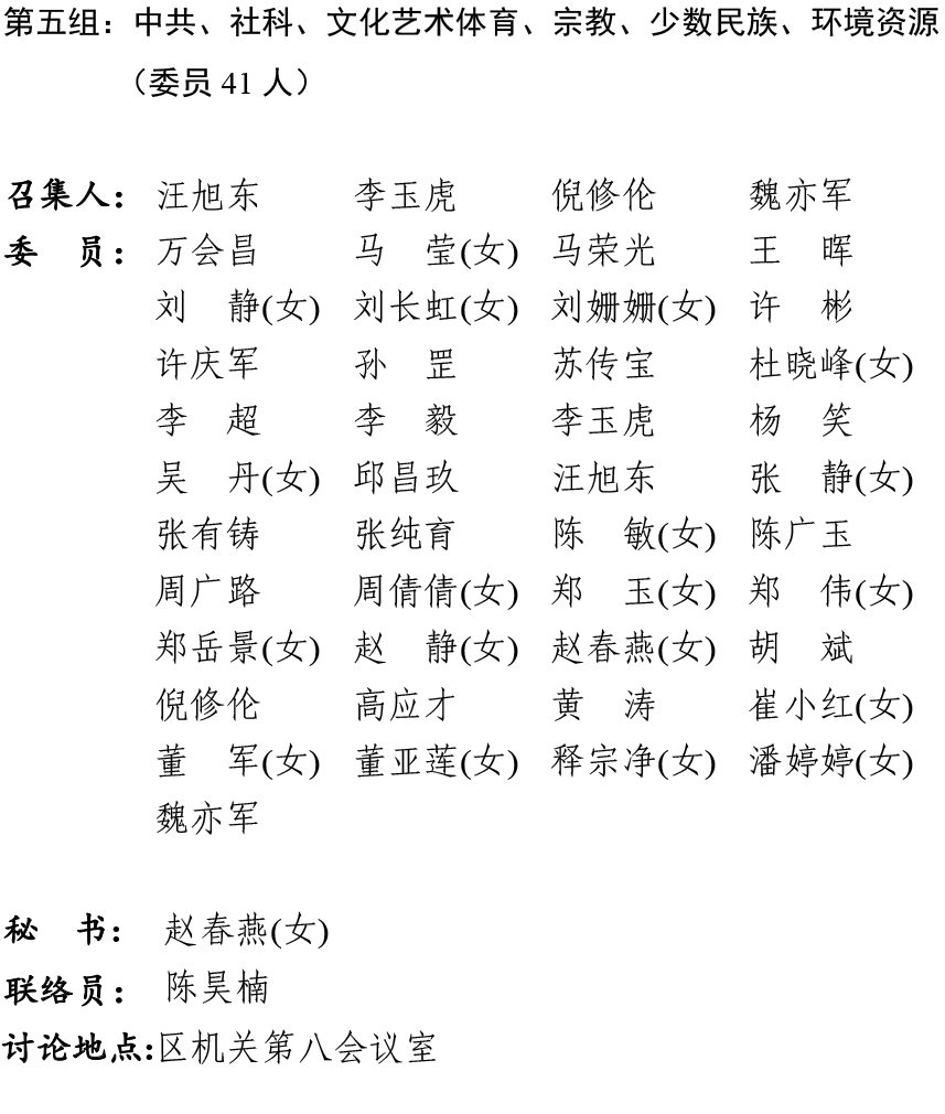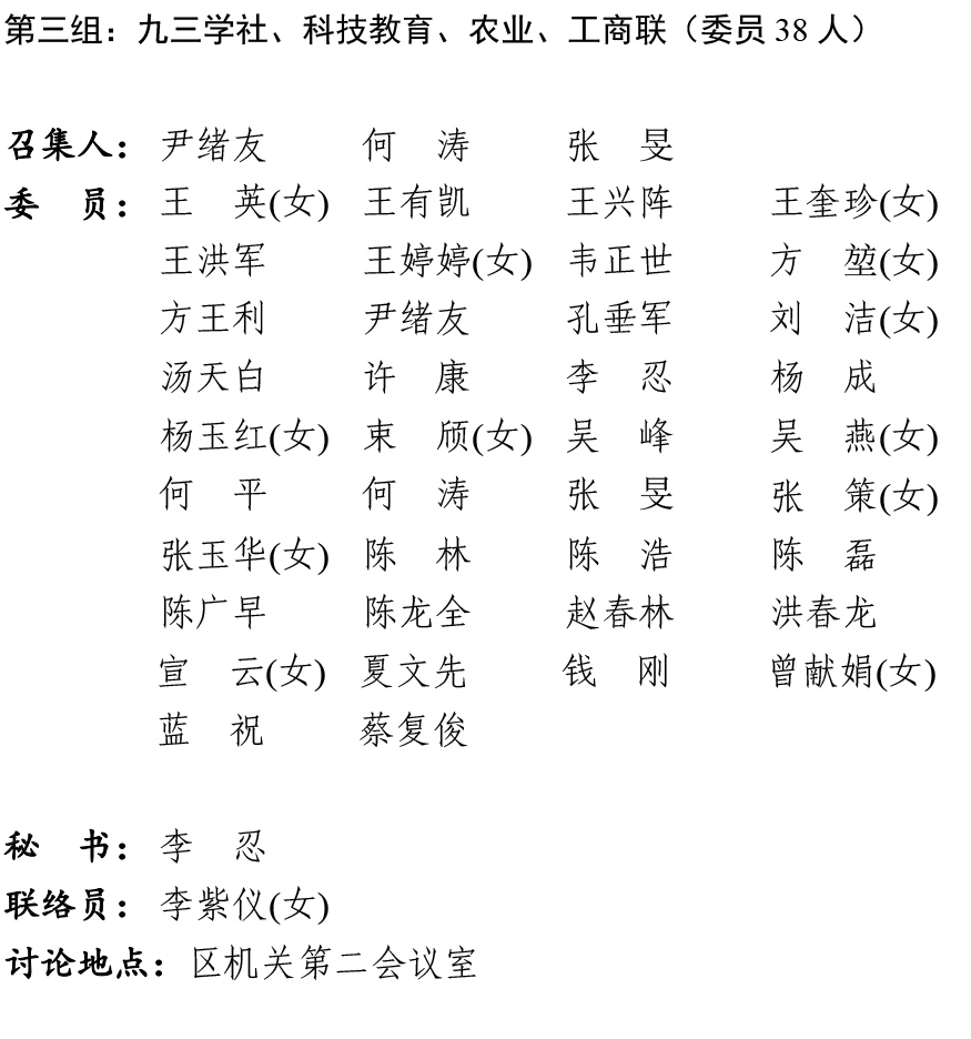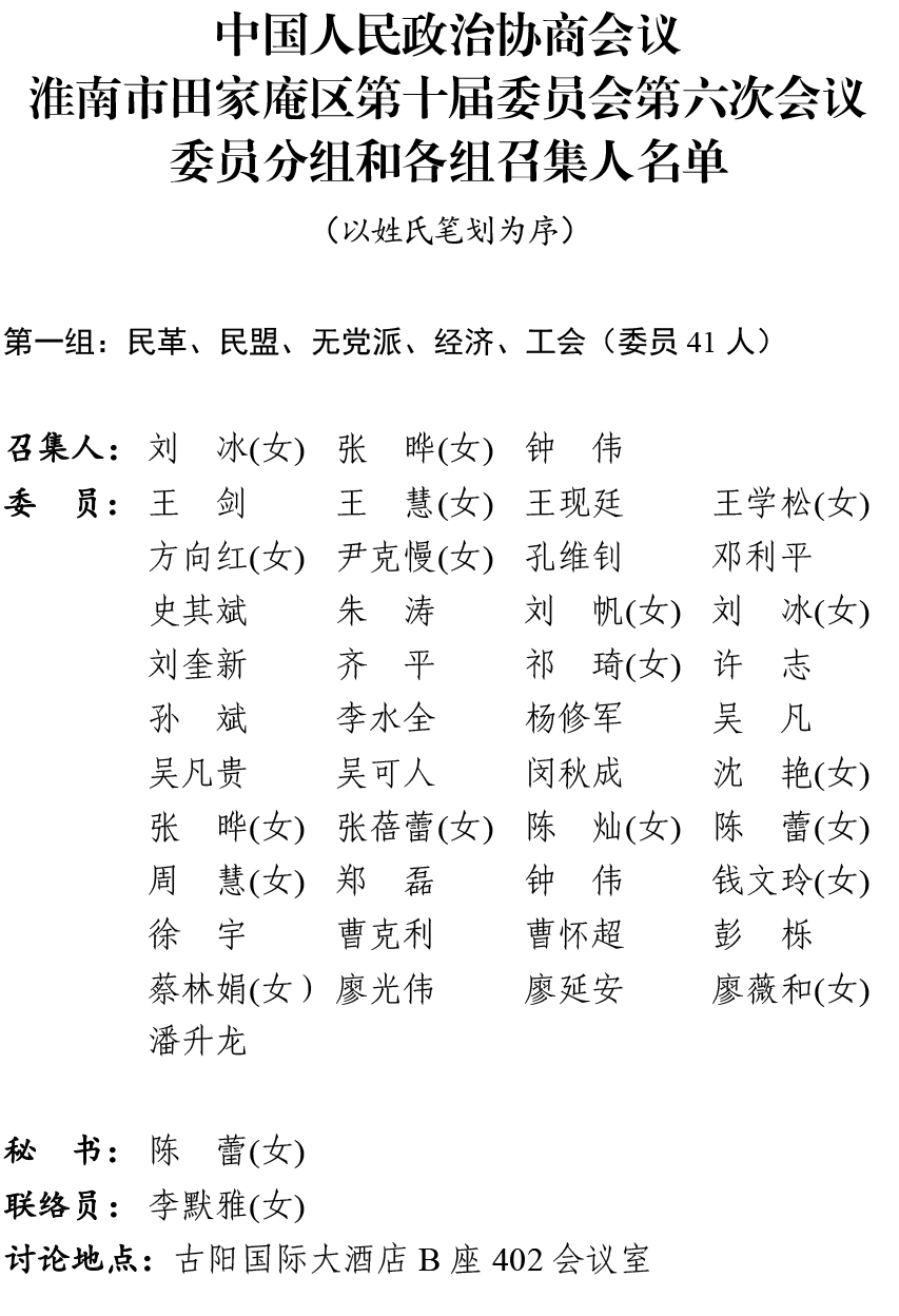 中国人民政治协商会议淮南市田家庵区第十届委员会第六次会议委员分组和各组召集人名单